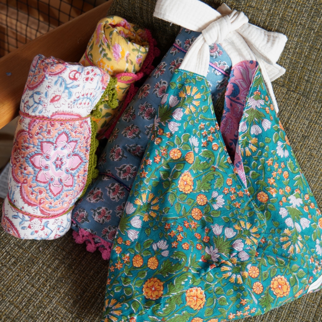 同じ生地の端切れから生まれたバッグなので、ブランケットとお揃いにするのもおすすめ。