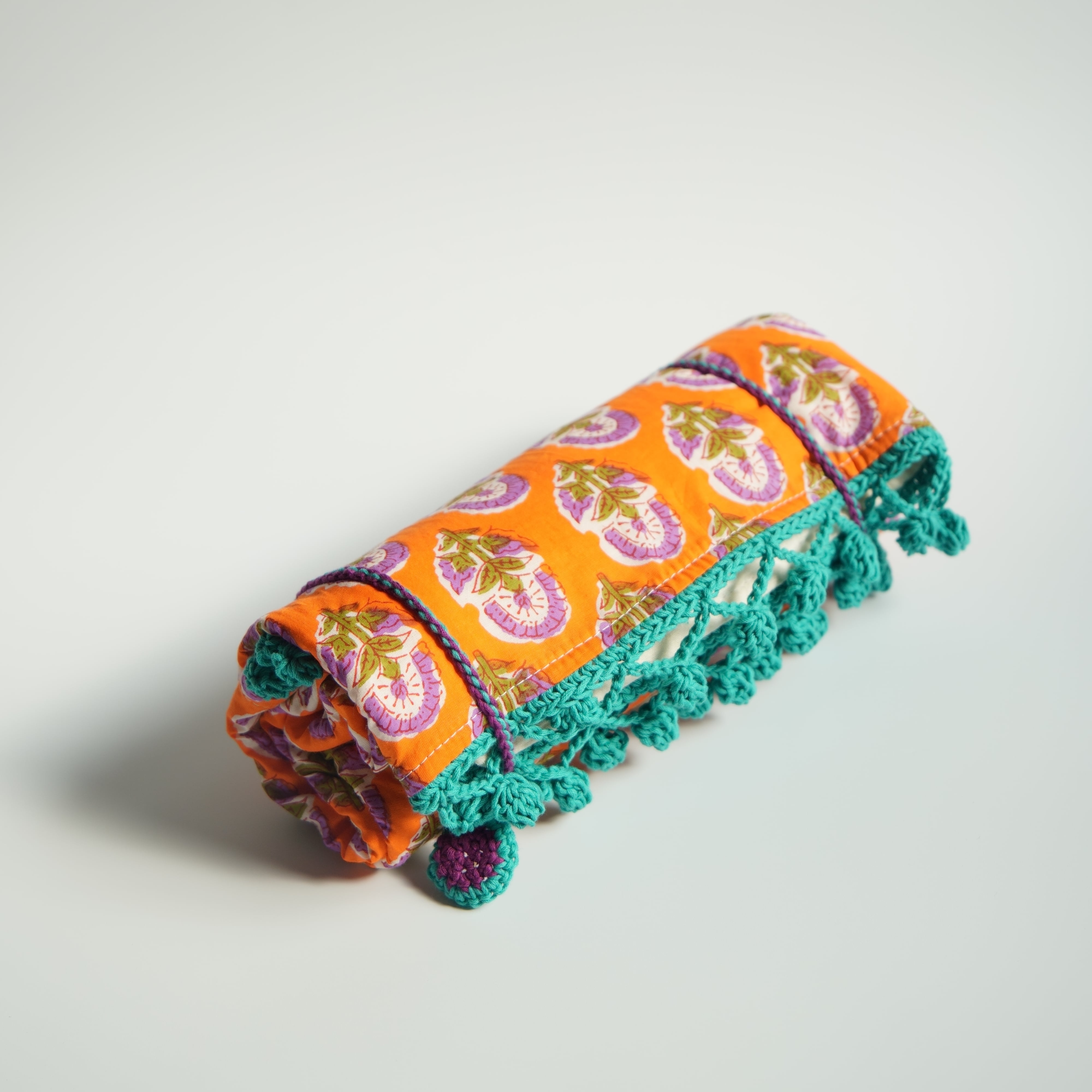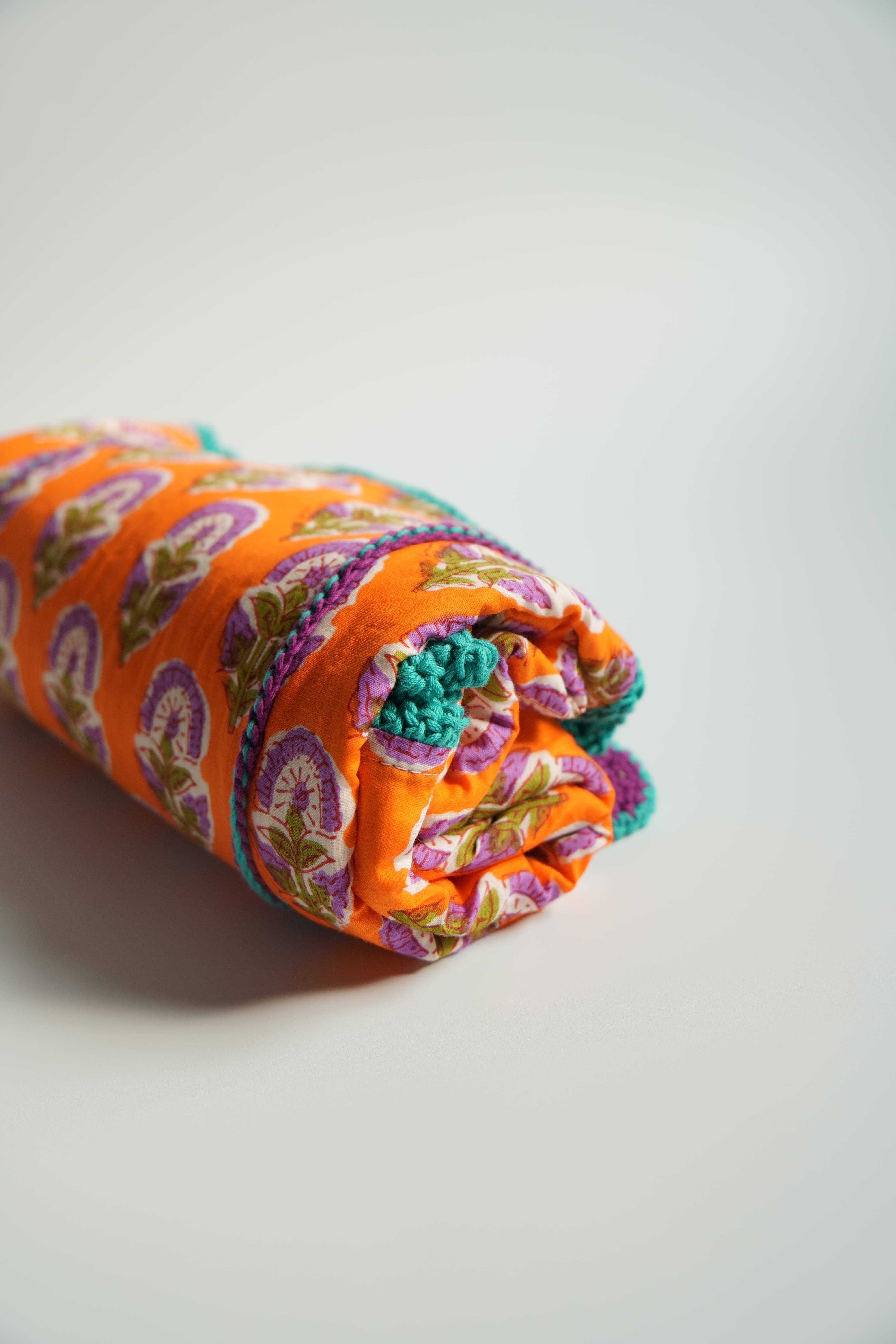 ふわふわ6重ガーゼのブロックプリントブランケット。
