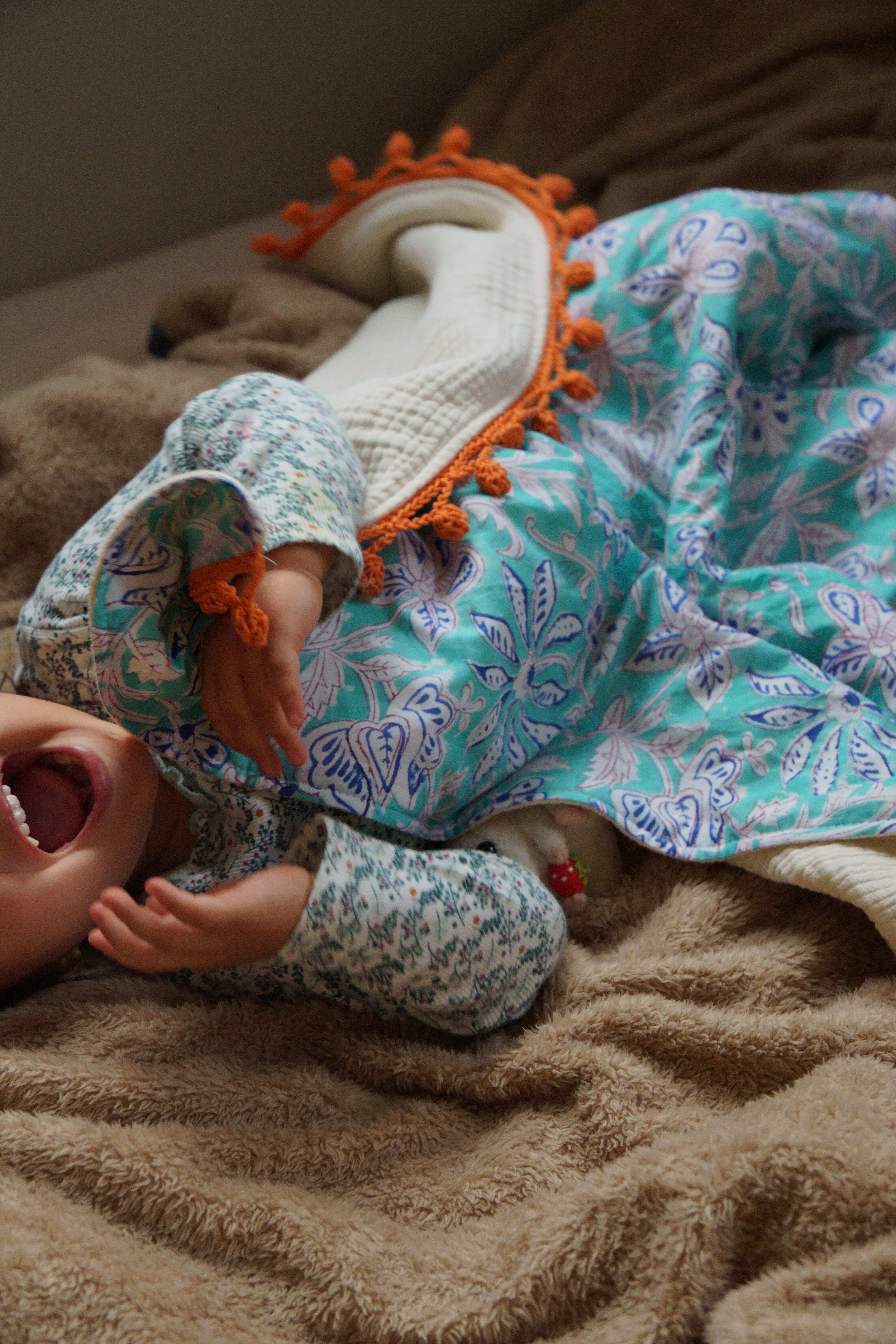 お昼寝・おでかけ・おくるみに、育児のあらゆるシーンで活躍する1枚です。