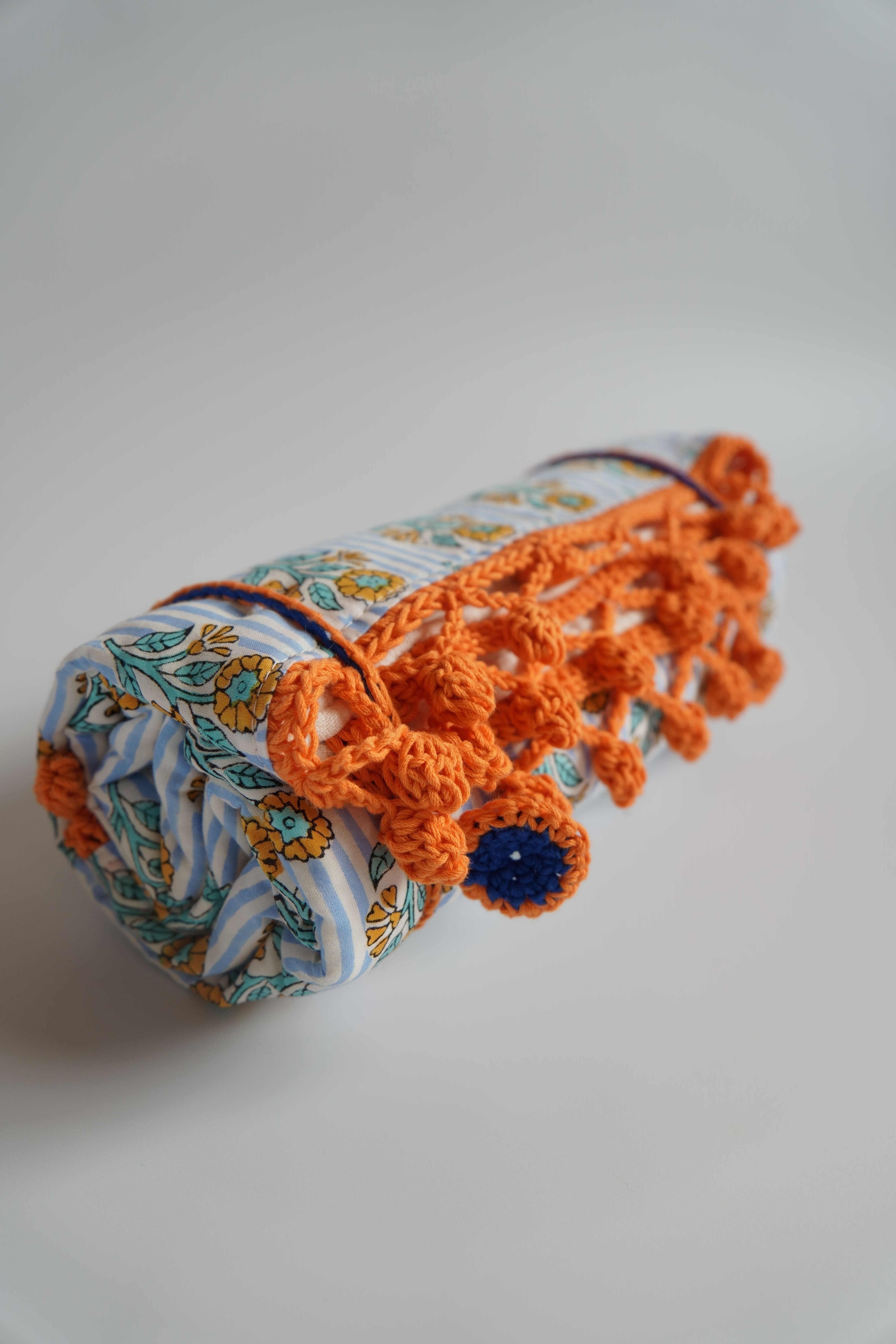 お選びいただいたブランケットと同じ生地を使用した紐になります。