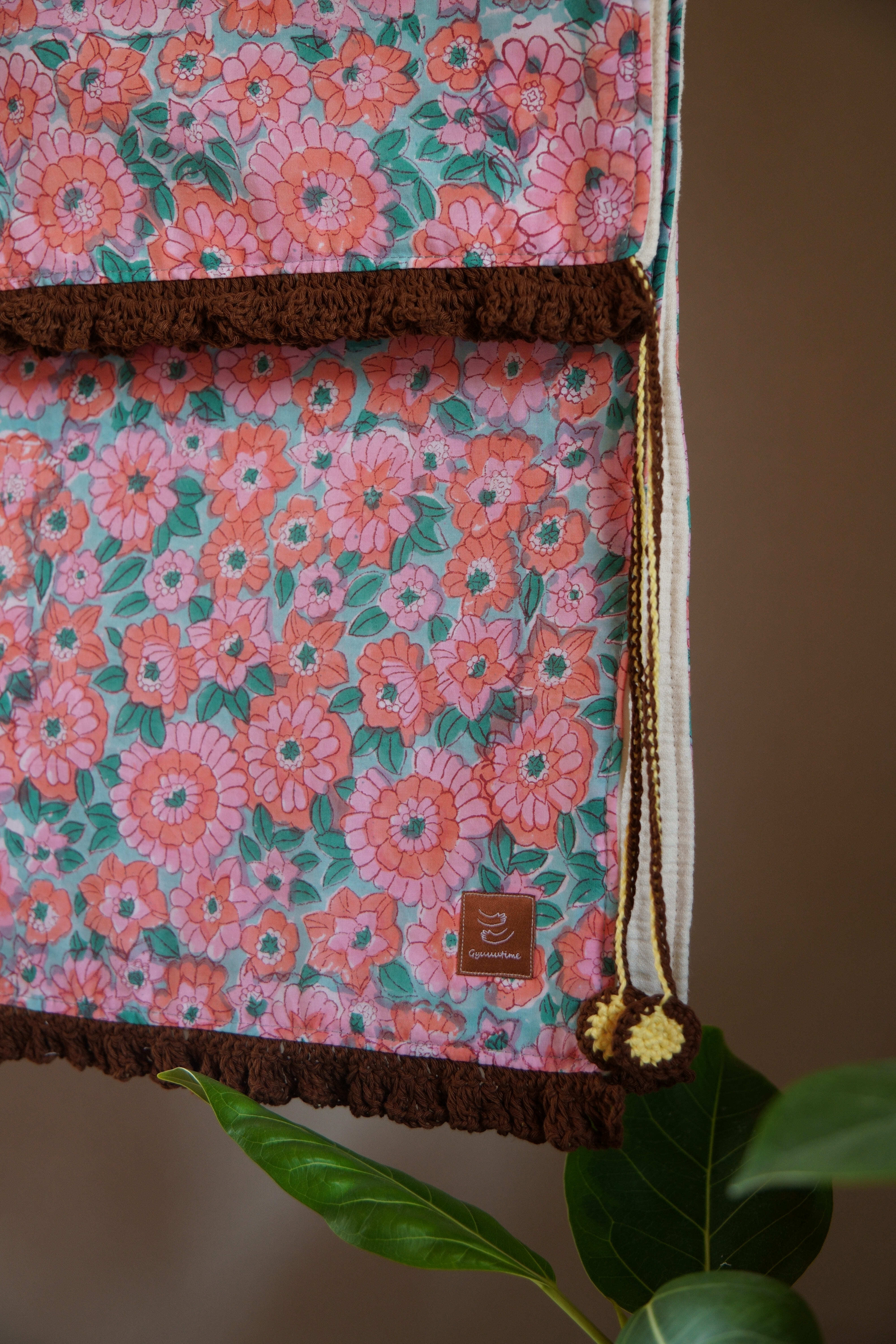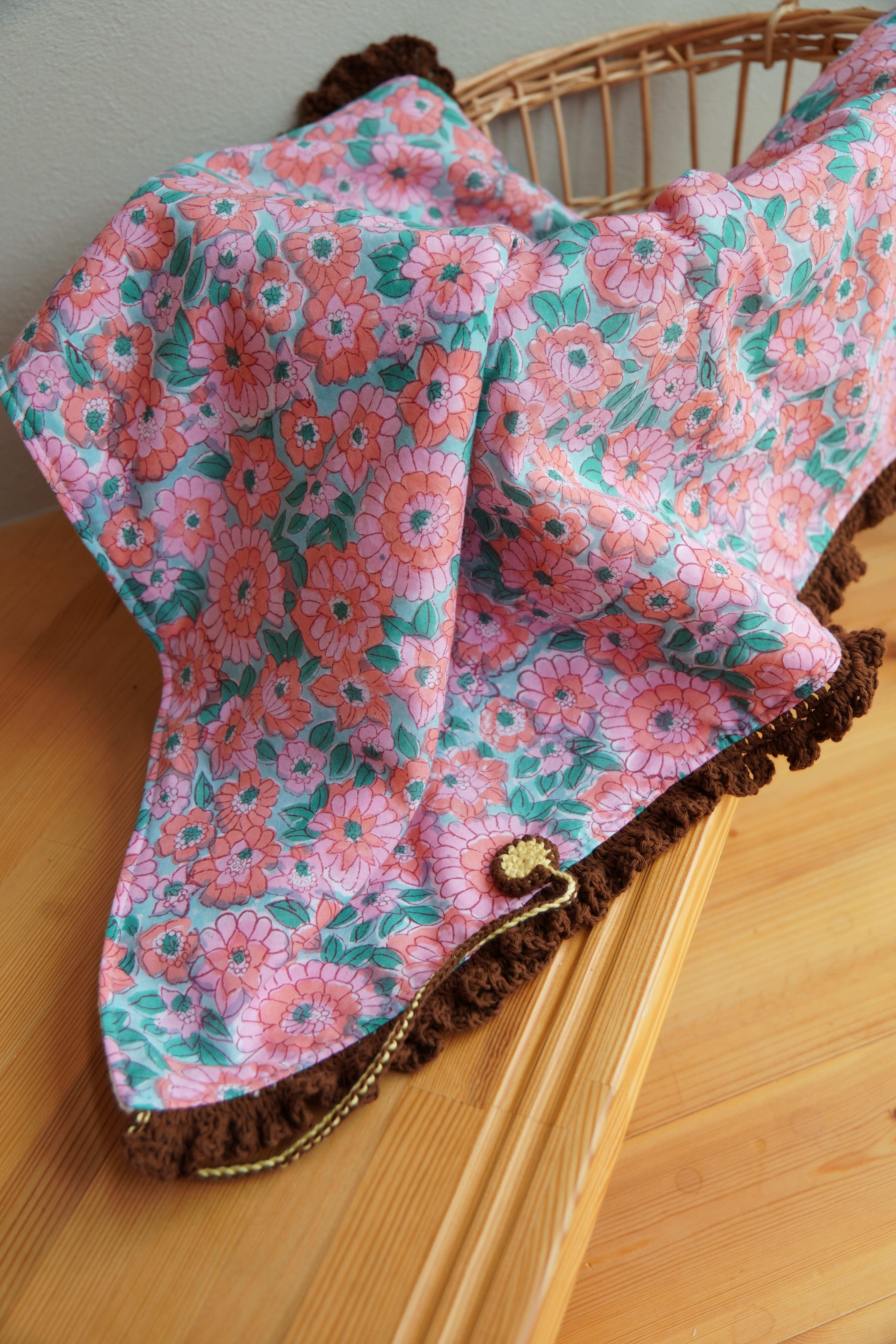 ブロックプリントのベビーブランケット。