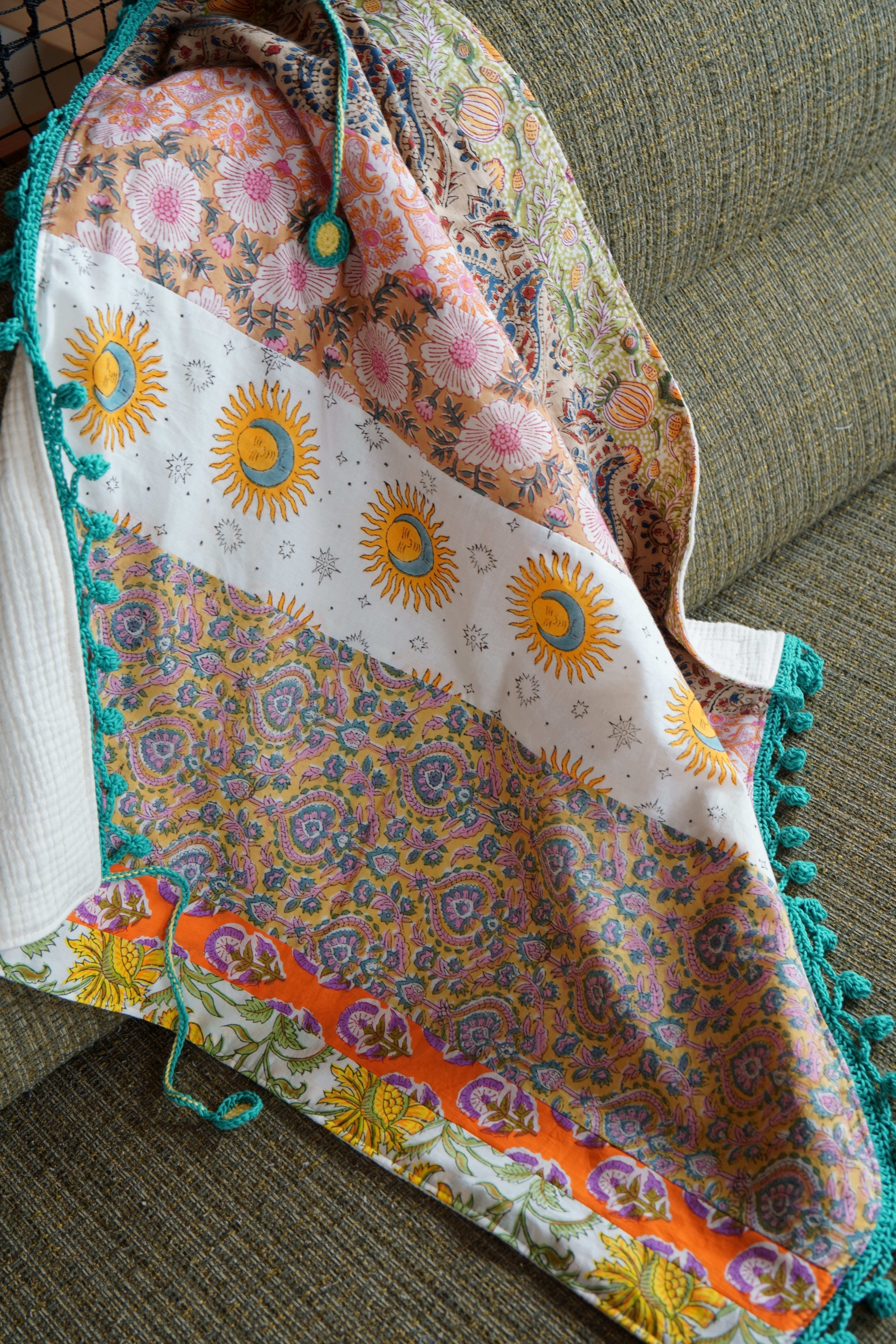ブロックプリントの生地たちを繋ぎ合わせて、