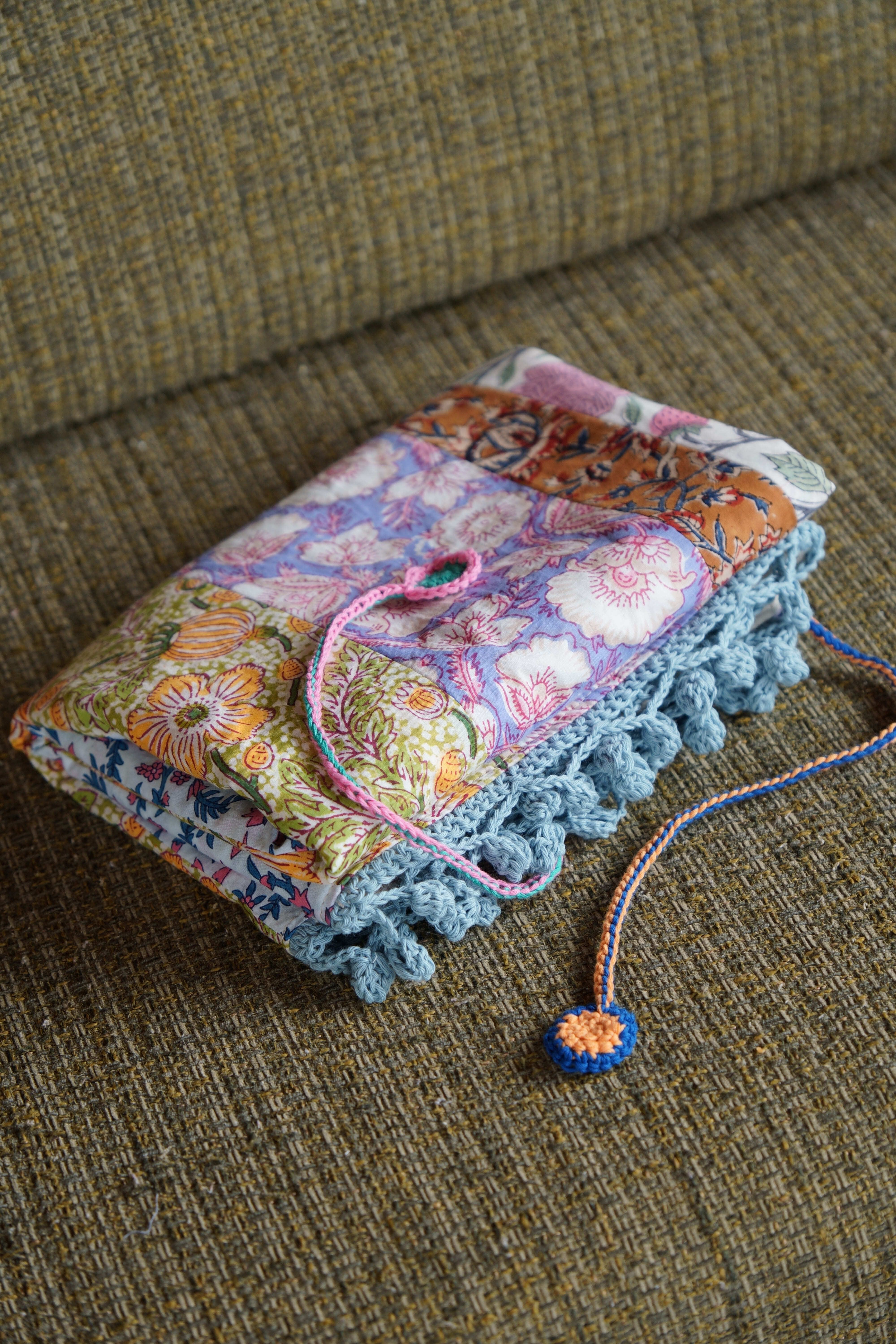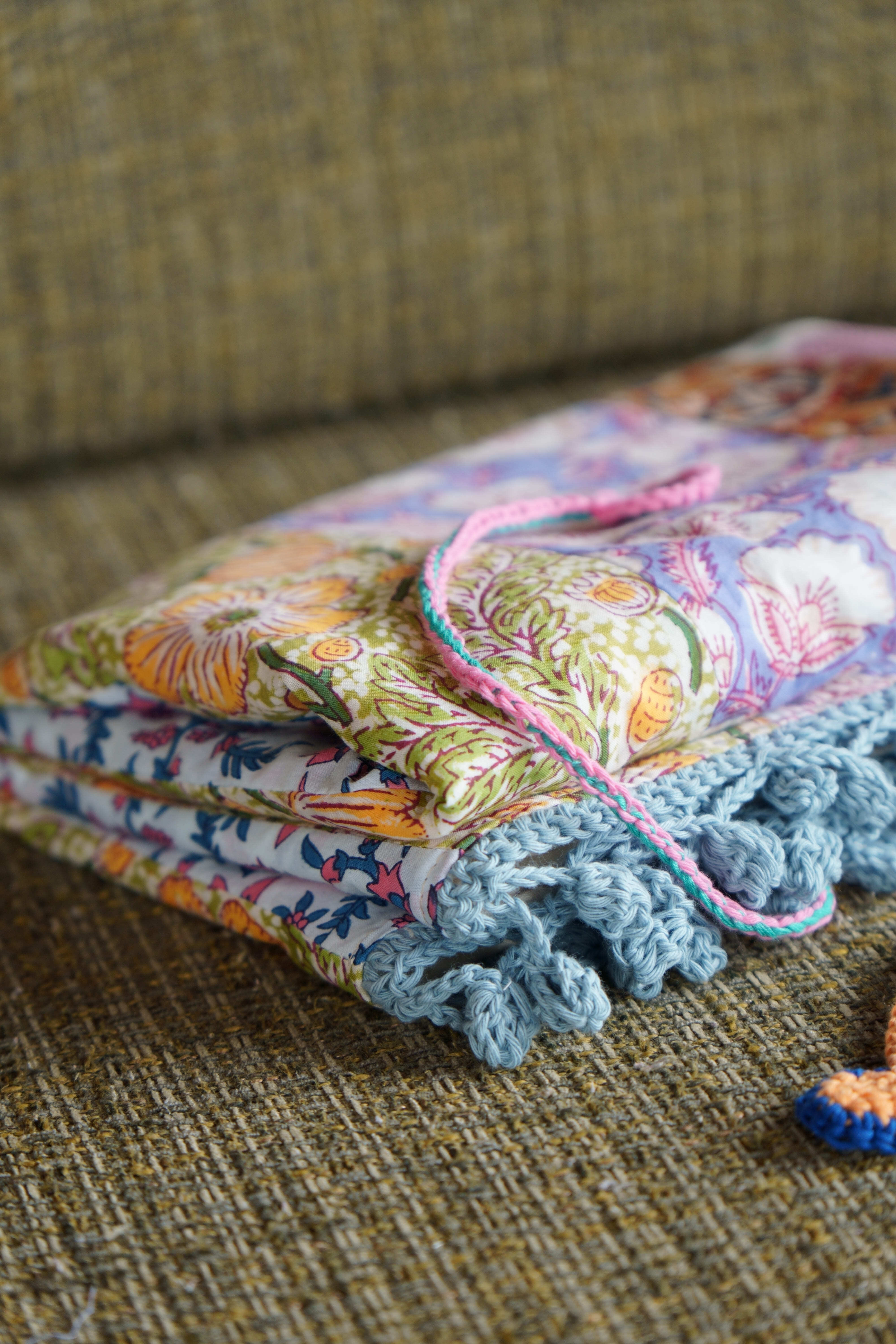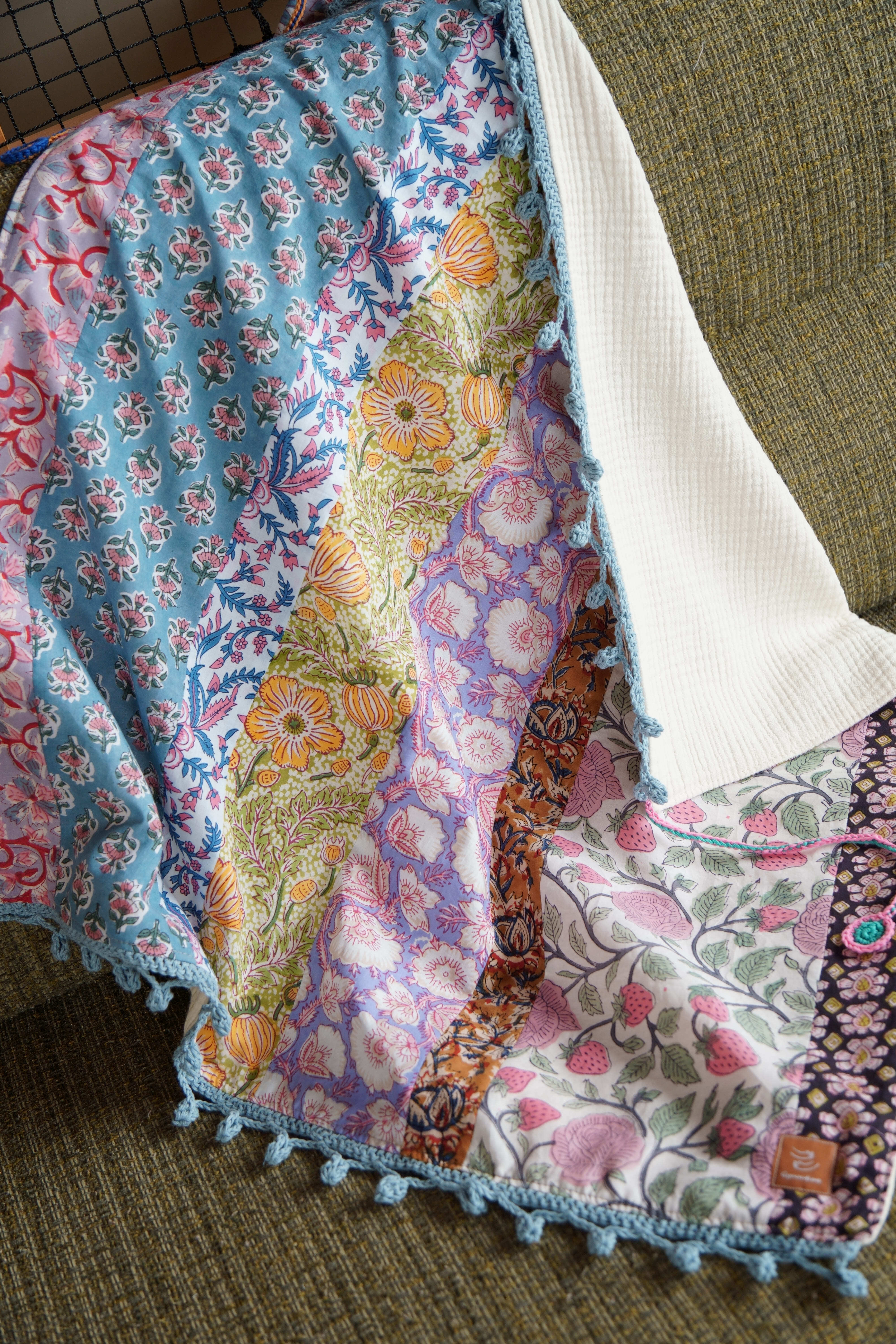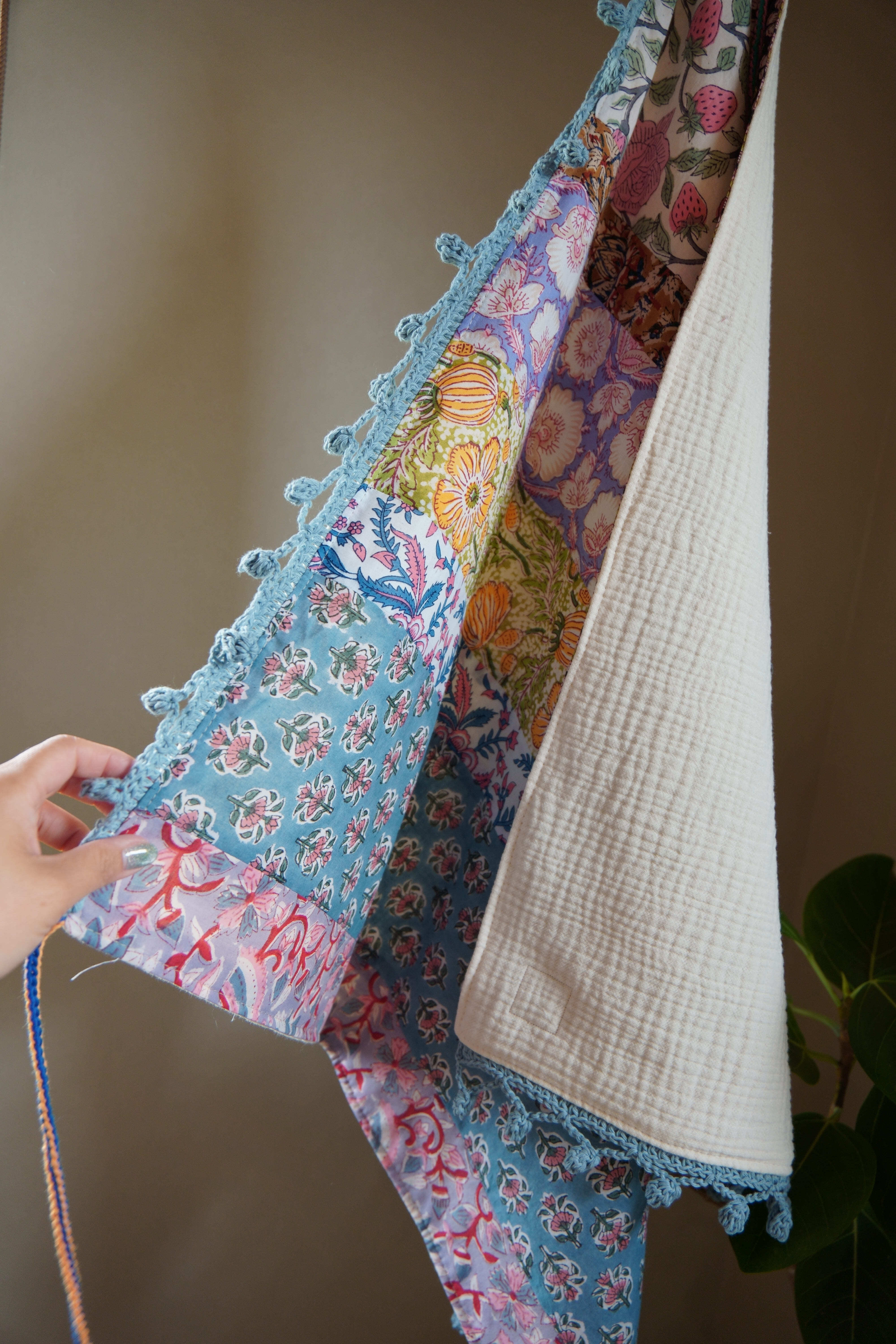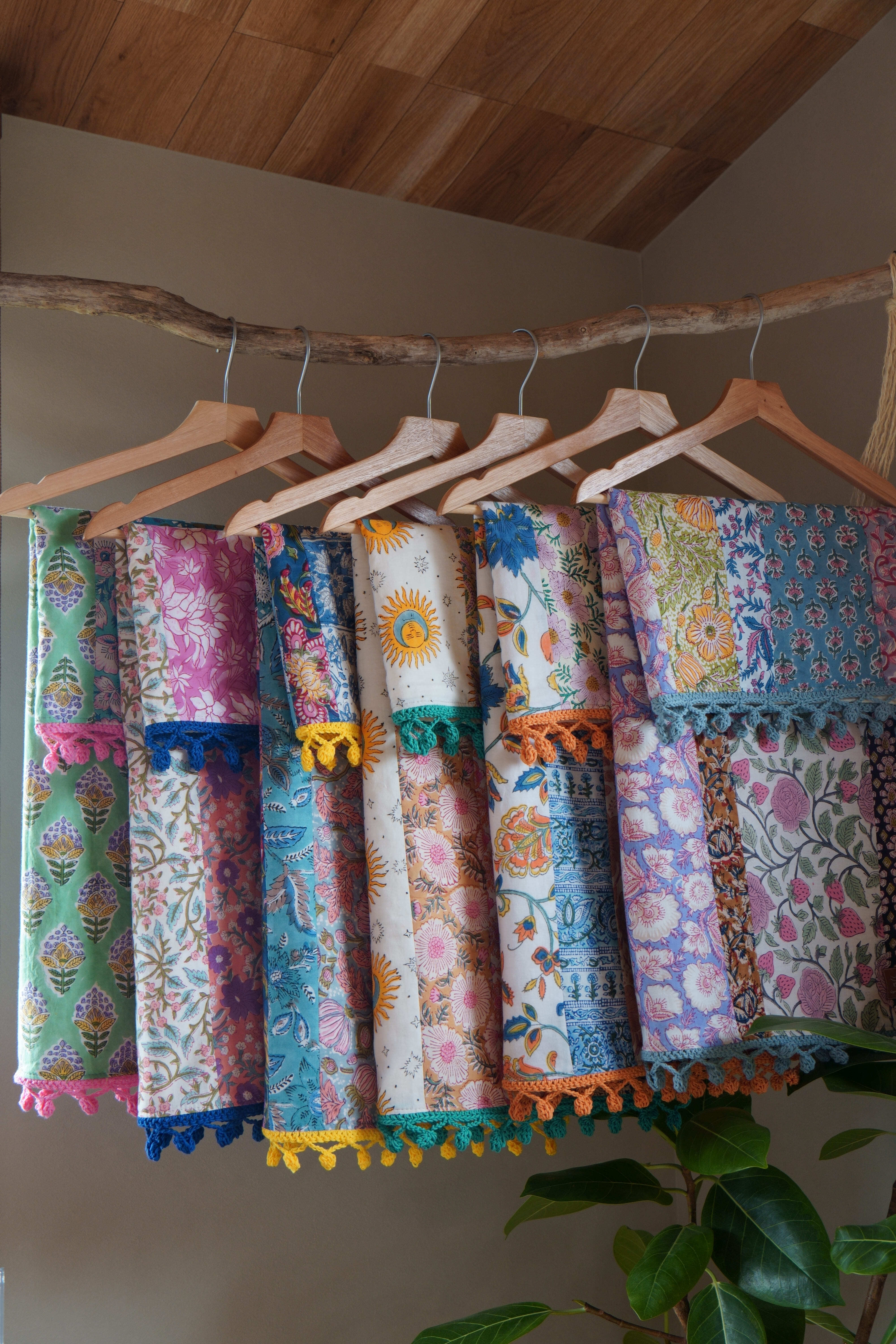 ブロックプリントの生地たちを繋ぎ合わせて、